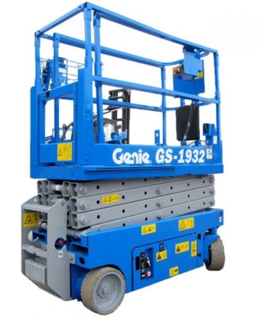 Avec la nacelle à ciseaux Genie GS-1932, vous pouvez atteindre une hauteur de travail de 8 mètres.