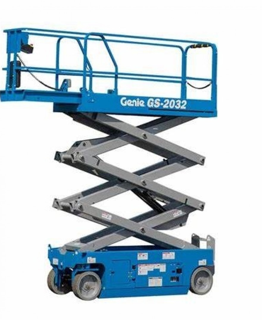 La nacelle à ciseaux électrique Genie GS-2032 dispose d’une grande plate-forme et sa capacité de chargement de 363 kg la rend idéale pour les électriciens. Sa hauteur de travail va jusqu’à 7,90 m. L’appareil est équipé de pneus non marquants.