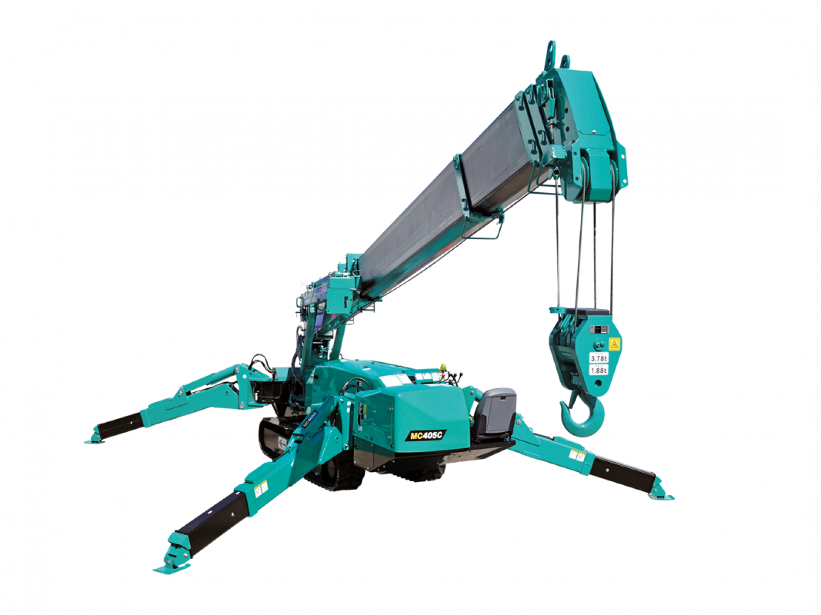 La mini-grue Maeda M405 CRME mesure 1,38 m de largeur et 1,98 m de hauteur ; elle peut donc passer par une porte double. Elle est alimentée au diesel ou par un courant de 380 V et est parfaite pour être utilisée dans les espaces confinés.