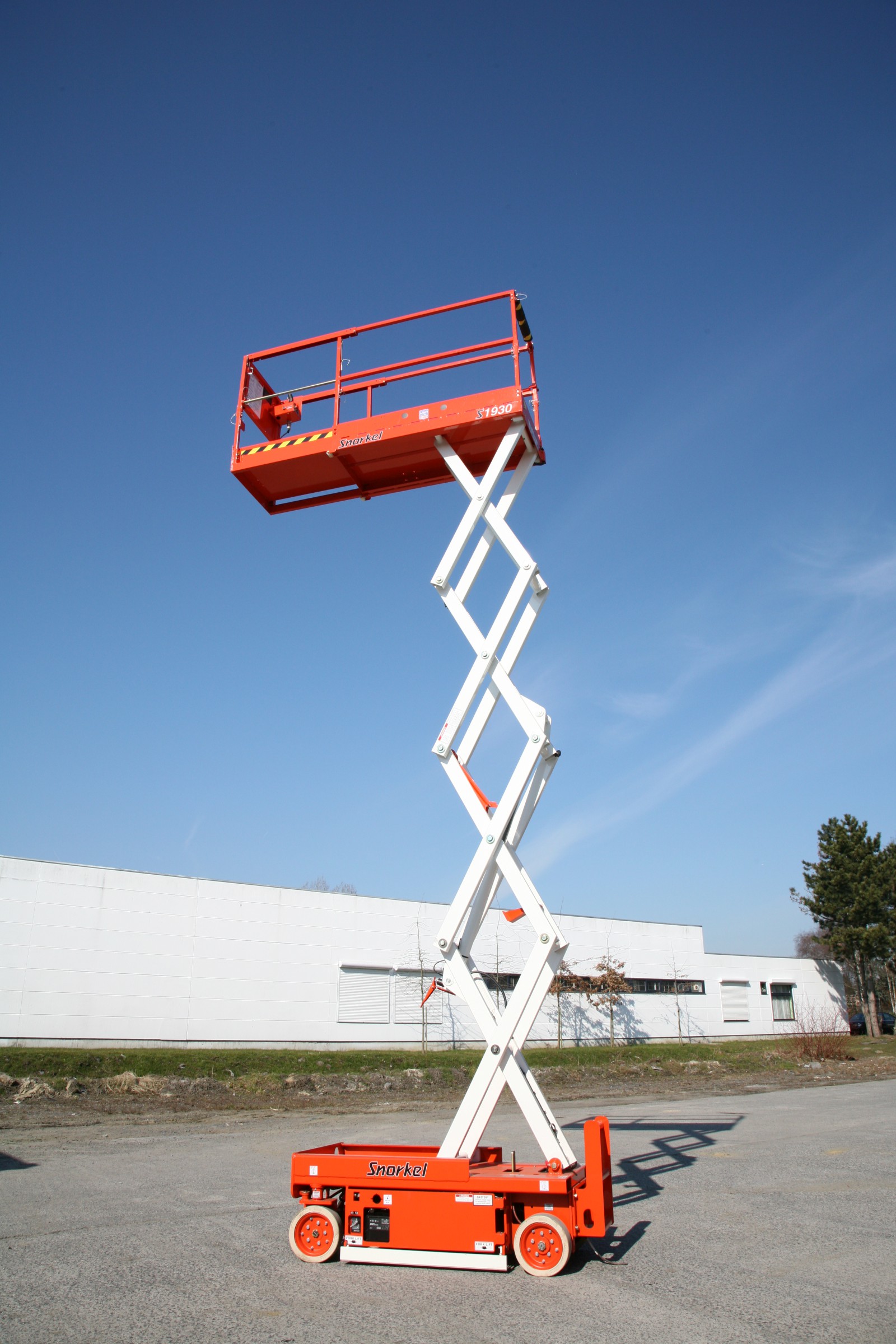 Utilisez la nacelle à ciseaux électrique Snorkel S1930E pour les travaux sur sol plan.